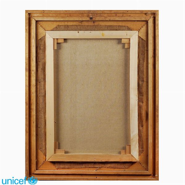 "La crocifissione", olio su tela, firmato in basso a destra, entro cornice., 70x50 cm.