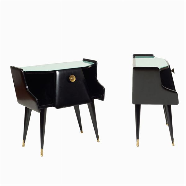 Coppia di comodini in legno ebanizzato