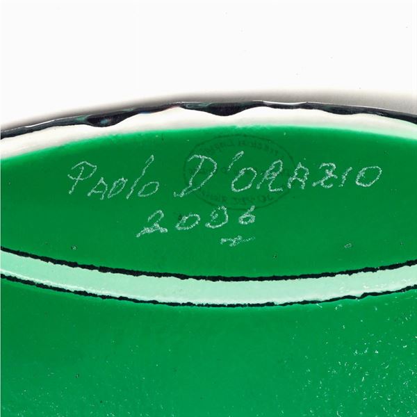 Centrotavola in cristallo colorato, realizzato presso 'Creazioni Lapigia', d. 47.5 cm.