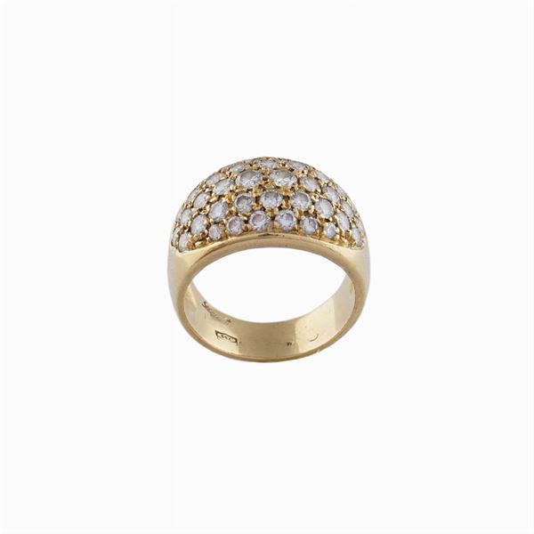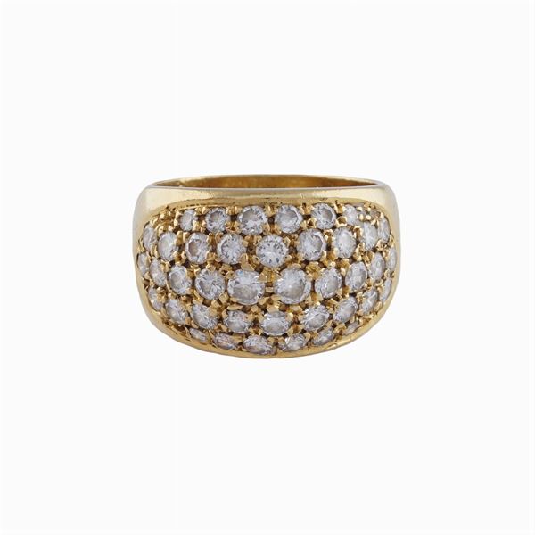 e pavé di diamanti taglio brillante ct 0,80 circa, misura 13,5, peso 8,4 gr.