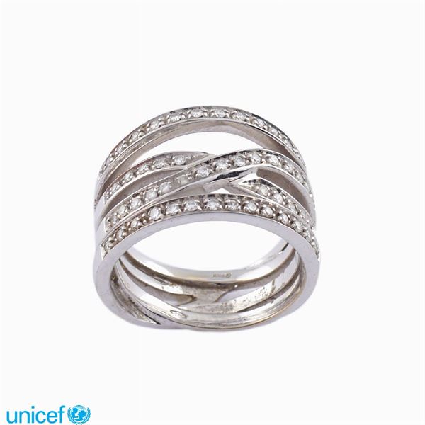 con diamanti taglio brillante ct 0,60 circa, misura 15, peso 11 gr.