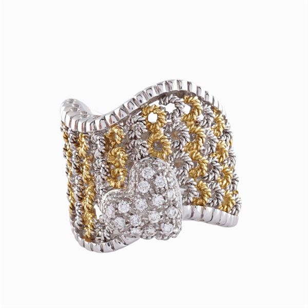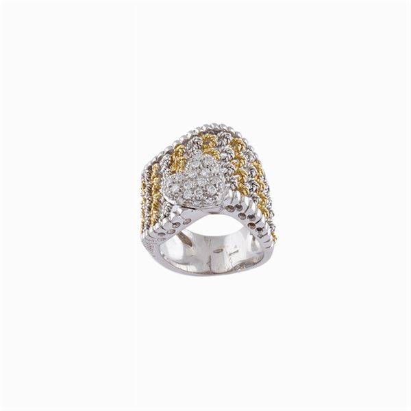 Anello a fascia sagomata oro giallo e bianco 18kt