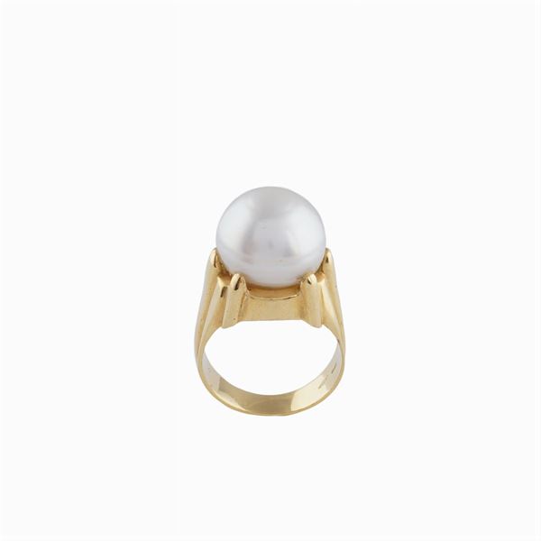 incastonata una perla South Sea10 mm. circa, misura 21, peso 19,8 gr.