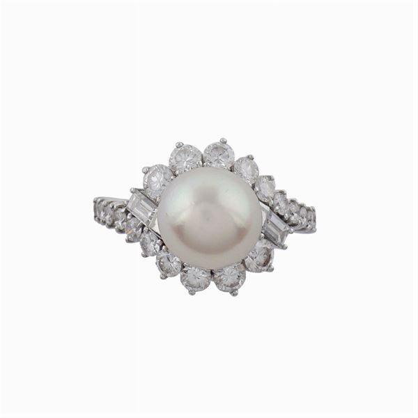 di 10 mm. circa e diamanti taglio brillante e baguette ct 1,40 circa, misura 10, peso 6,5 gr.