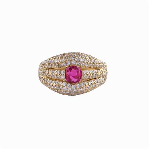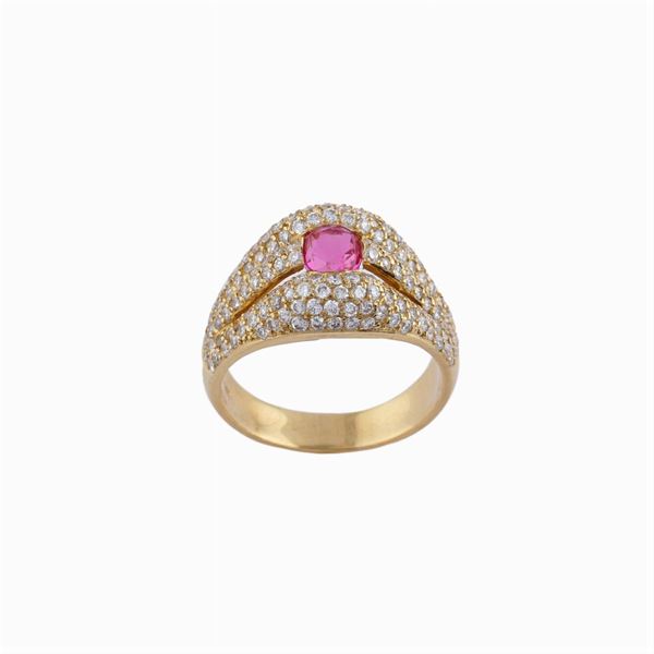 taglio ovale briolet ct 0,80 circa contornata da diamanti taglio brillante ct 1,70 circa, misura 18, peso 10 gr.