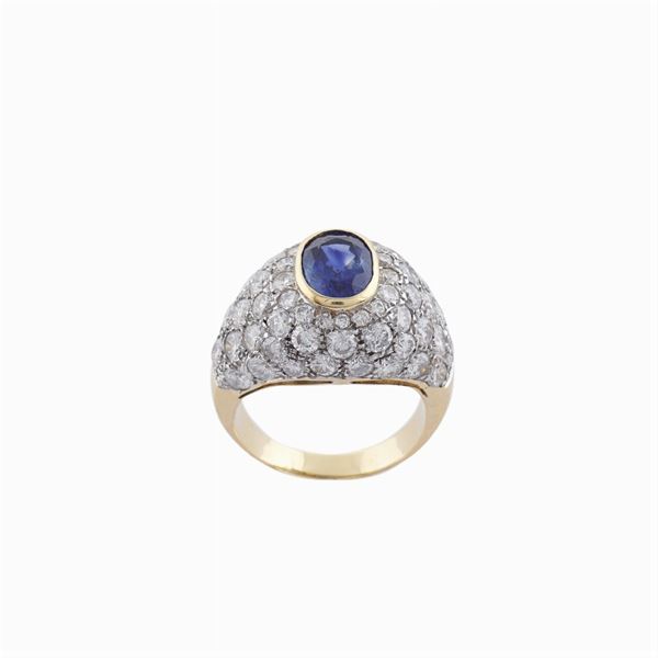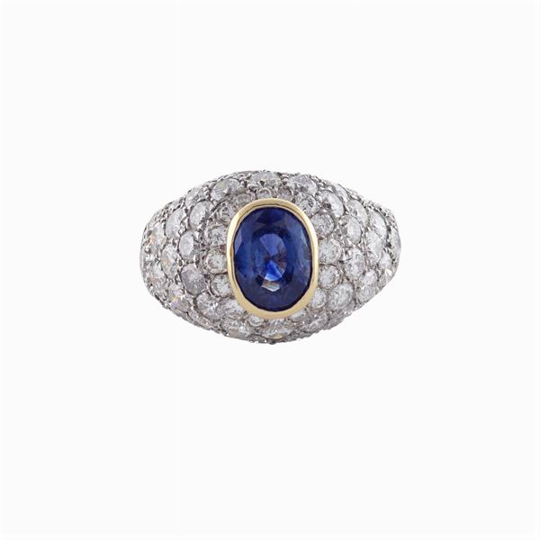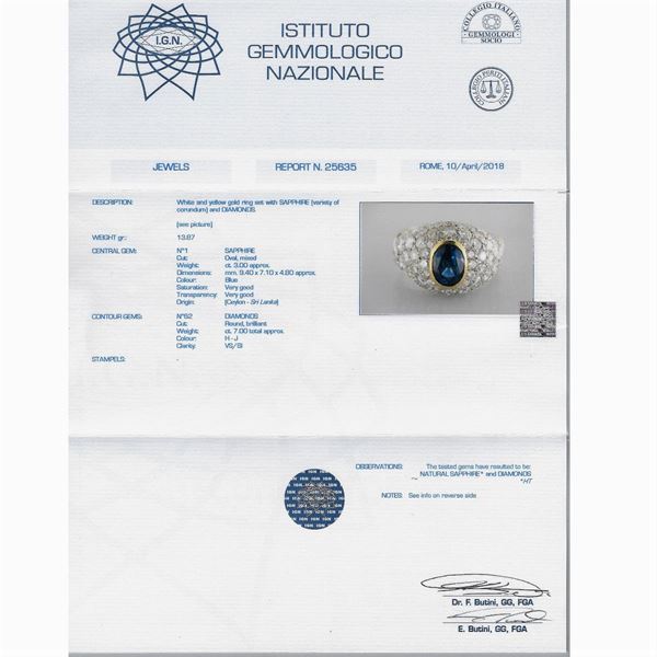Anello in oro giallo e bianco 18 kt e zaffiro Ceylon