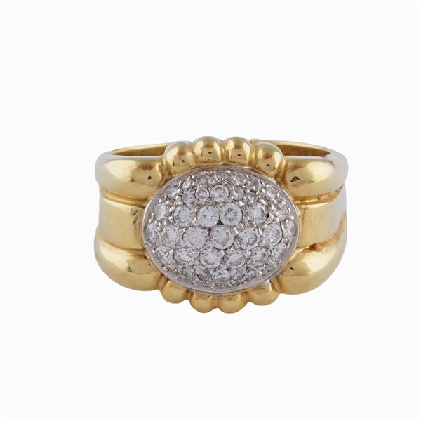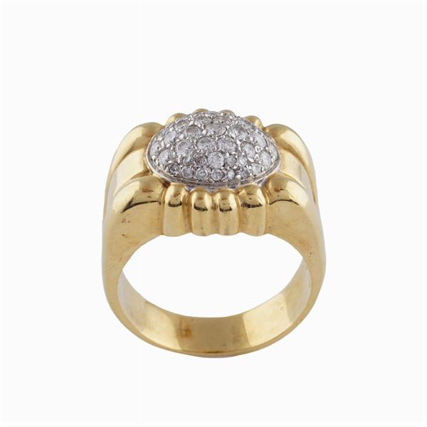 con pavé di diamanti taglio brillante ct 1,20 circa, misura 29, peso 19,9 gr.