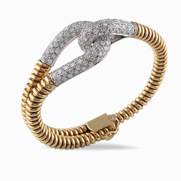 maglia a tubogas con diamanti taglio brillante ct 6,50 circa, chiusura a scomparsa, peso 52 gr.