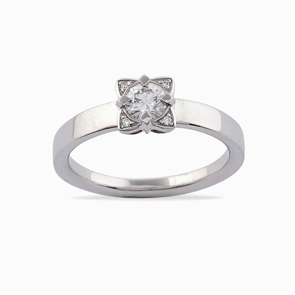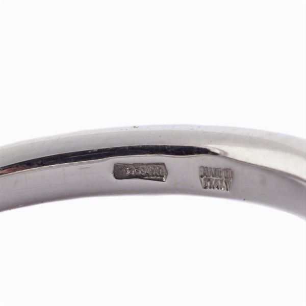 in oro bianco 18kt con un diamante taglio brillante ct 0,20, firmato all'interno del gambo, misura 7, peso 4,1 gr.