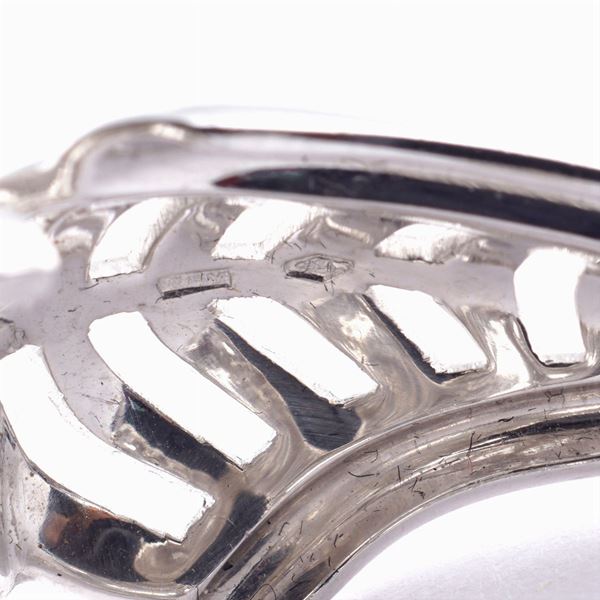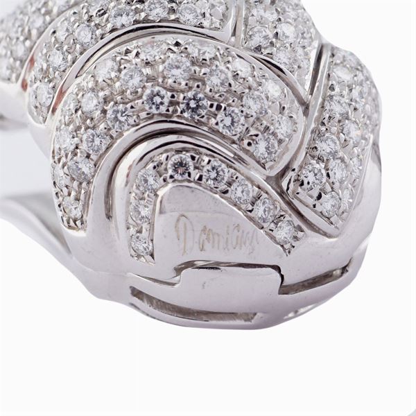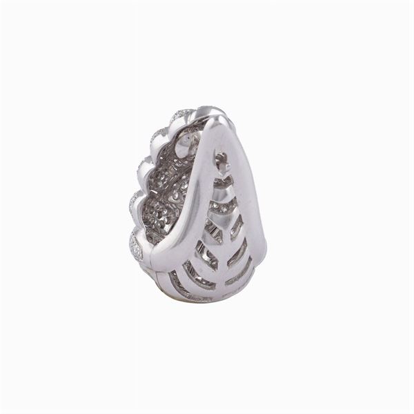 lavorato a torchon e diamanti taglio brillante ct 5 circa, firmati in basso a sinistra, peso 29 gr.