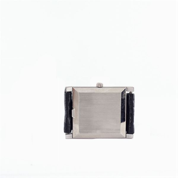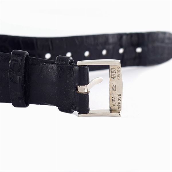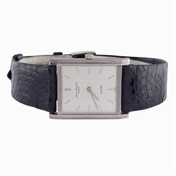 in oro bianco 18kt, ref. n. 3519, cassa rettangolare 33x25 mm. n. 2666725, quadrante argentato con indici, firmato Gobbi, movimento meccanico a carica manuale ref. n. 1147009, calibro 23-300, cinturino originale in pelle con fibbia ad ardiglione in oro bianco. Completo di scatola originale e garanzia