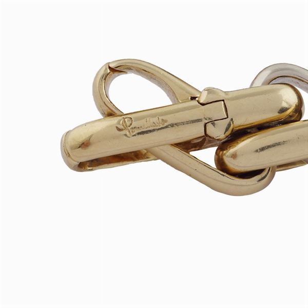 scomponibile in due bracciali, maglia a catena intrecciata con diamanti taglio brillante ct 2 circa, chiusura a scomparsa, firmata, lunghezza 43 cm., peso 211 gr.