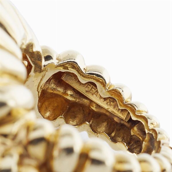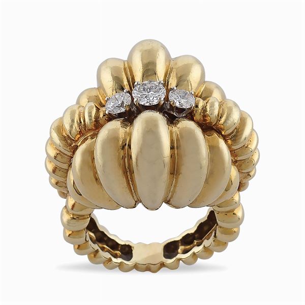 in oro giallo18kt con tre diamanti taglio brillante ct 0,50 circa, firmato all'interno del gambo, misura 16, peso 32 gr.