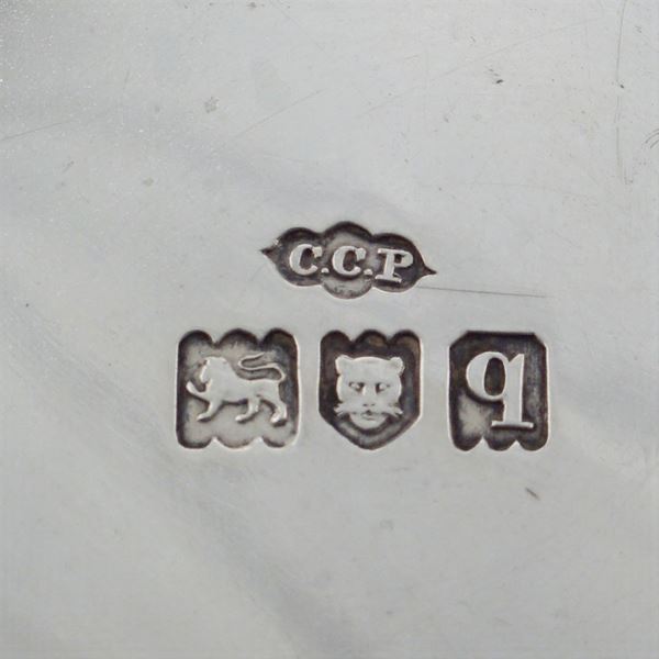 orafo Charles Clement Pilling, superficie liscia con profilo godronato, interno in vetro, 6x11 cm., peso 189 gr.