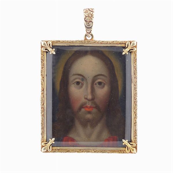 forma di cornice, all'interno sono ritratte l'immagine di Cristo e la Pietà, 8x5 cm.