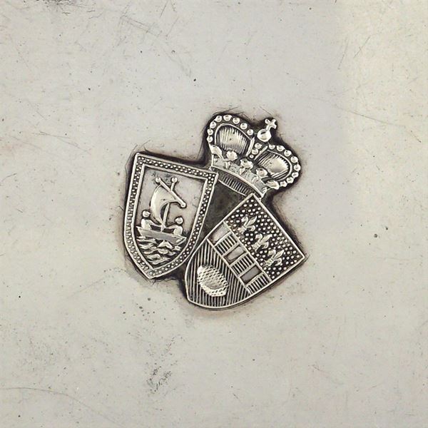 orafo G. Ciardetti, Firenze, forma romboidale a corpo liscio, stemma nobiliare al centro, chiusura a molla, usure e difetti, 1,5x13x10 cm., peso 86 gr.