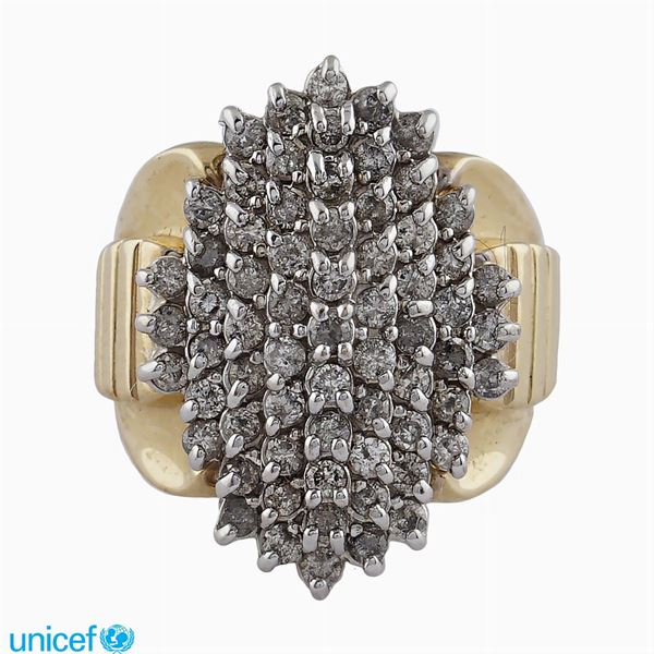 e diamanti taglio huit-huit ct 0,60 circa, misura 14, peso 9,9 gr.