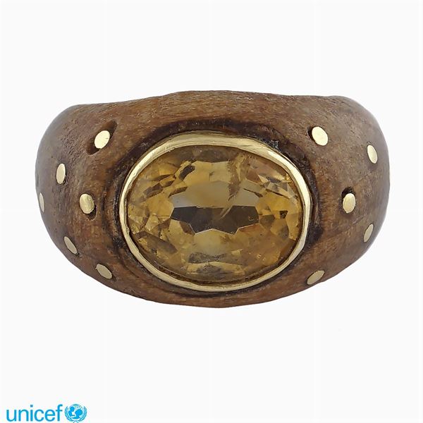 Anello in legno e oro giallo 18kt con quarzo citrino