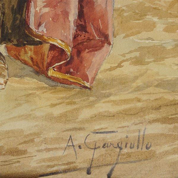 "Ritratto di arabo con levrieri", acquarello, firmato in basso a sinistra, entro cornice, 70x52 cm.