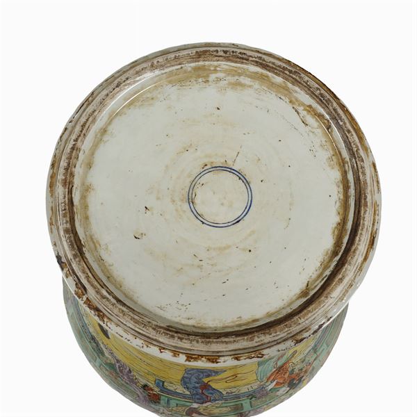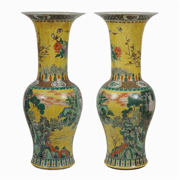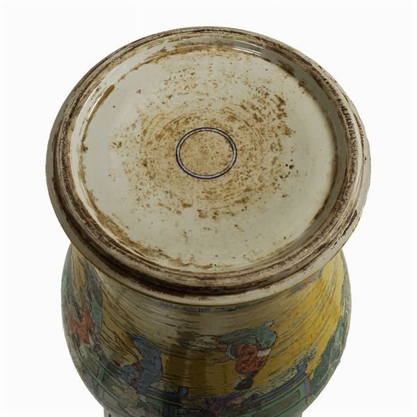 corpo a balustro, decorati in policromia con scene di vita e motivi floreali, h. 98,5x40 cm.