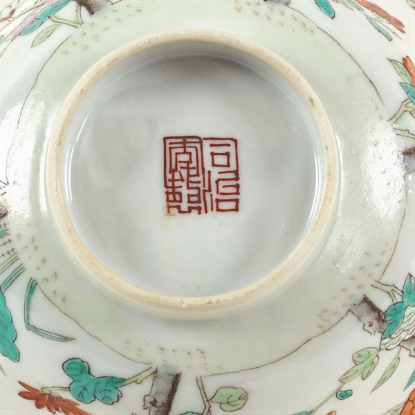 dipinta in policromia con motivi floreali, 6,5x13,5 cm. - 6,7x14 cm.