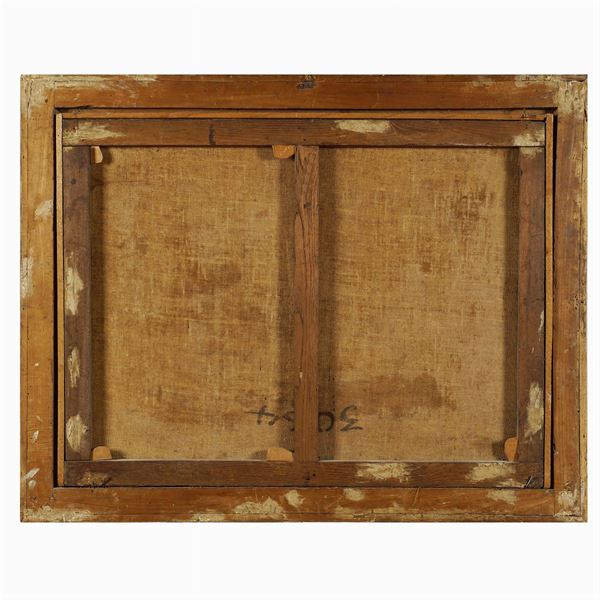 "Paesaggio con armenti e pastore", olio su tela, entro cornice, 74x99 cm.