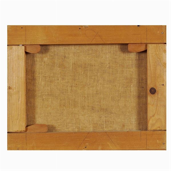 All'esame della lampada di Wood, il dipinto presenta degli interventi di ridipintura, in particolare nelle zone raffiguranti il paesaggio., 39x30,5 cm.