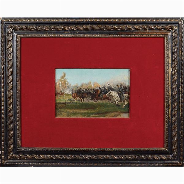 "Fanteria", olio su tela, entro cornice parzialmente dorata