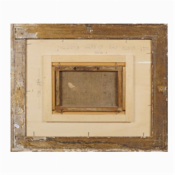 All'esame della lampada di Wood non sono presenti interventi di restauro, si riscontra solo una piccola caduta di colore in prossimità della cornice, in alto a sinistra., 15,5x25 cm.