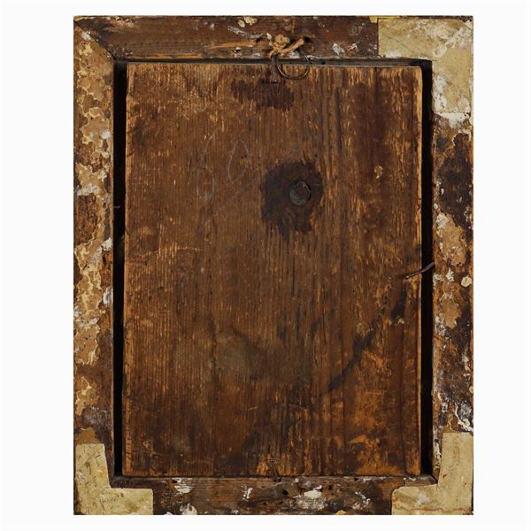 All'esame della lampada di Wood, il dipinto non presenta interventi di restauro o ridipintura., 19x13,7 cm.