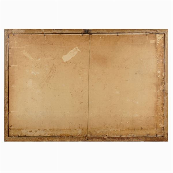 "Cavalli e carrozza", tecnica mista e acquarello su carta, firmato e datato 1880 in basso a destra, entro cornice, lievi fioriture, 50x80 cm.