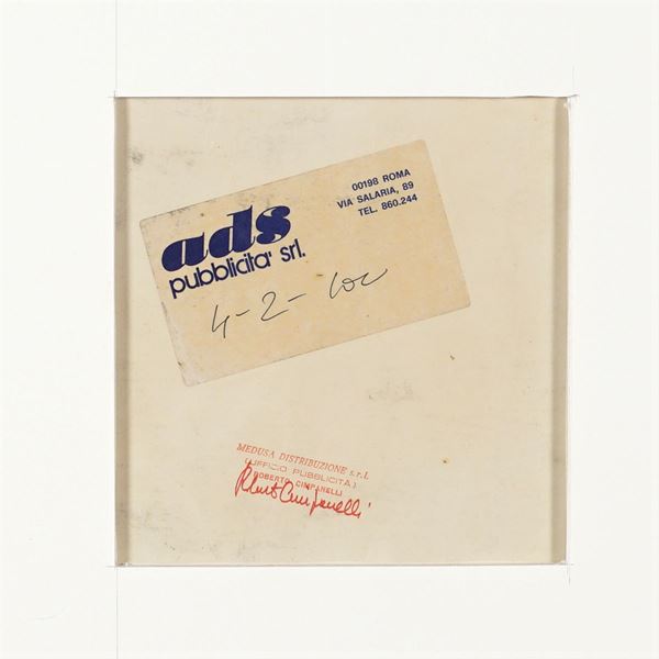 tecnica mista e collage su cartoncino, timbri al retro Medusa Distribuzione srl, entro cornice, lievi difetti, 59x43 cm.