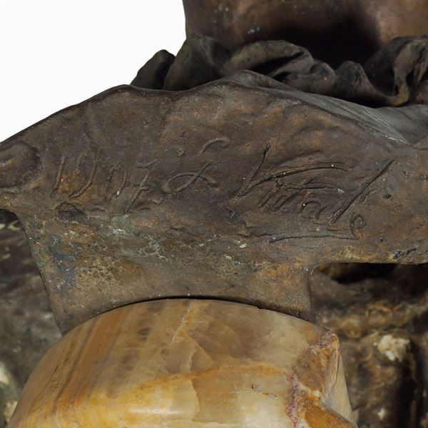 "Busto femminile", 1907, scultura in bronzo poggiante su base in marmo, firmata e datata in basso, lievi difetti, h. 55 cm.
