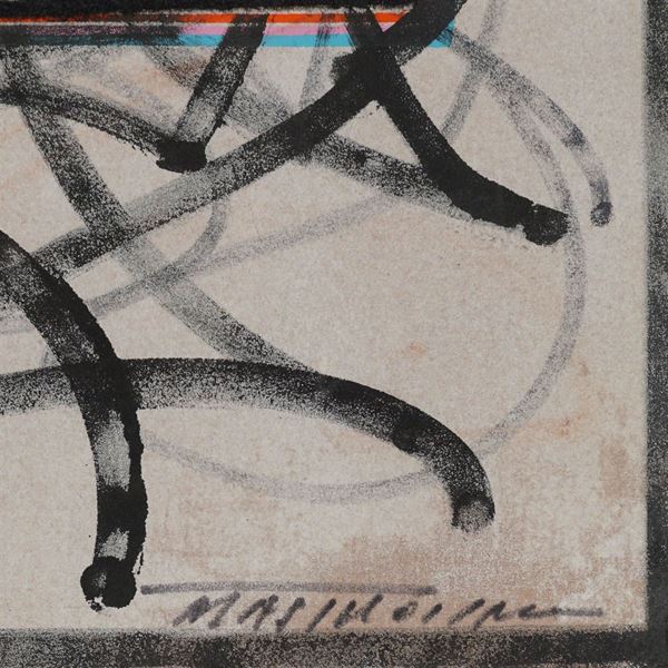 "Senza titolo", tecnica mista su cartoncino, carta in rilievo nella parte centrale, firmata in basso a destra, entro cornice , 46x33 cm.