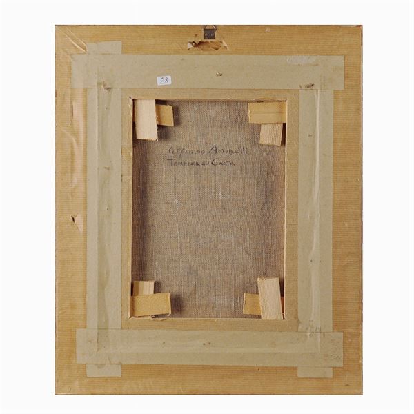"Ballerina", tempera su carta, firmato in basso a destra, entro cornice, 16x9 cm.