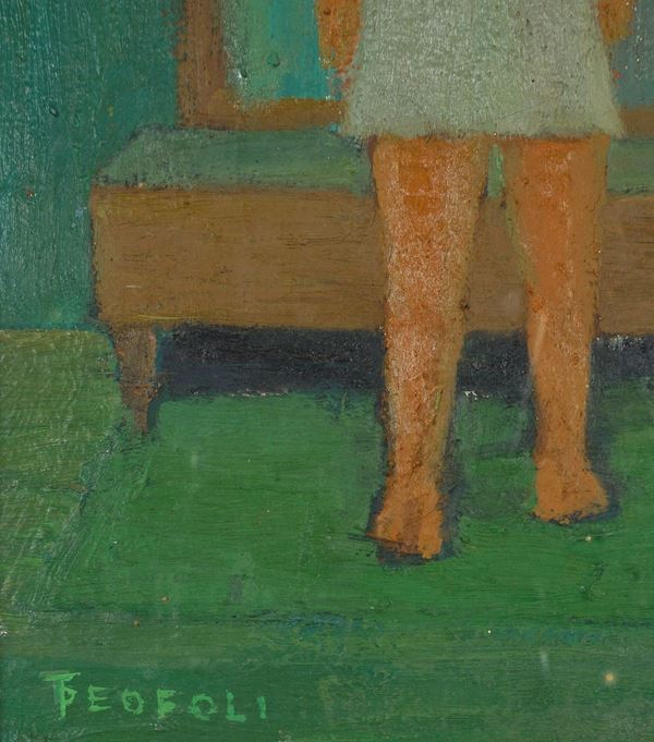 "Figura femminile", olio su tela, firmato in basso a sinistra "Teofoli", entro cornice, 36x24,5 cm.