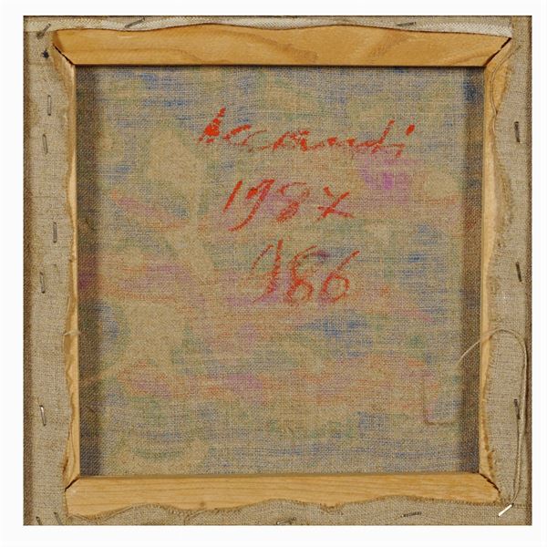 "Azzurroviola", 1987, vinilico su tela, firmato e datato in basso a sinistra, firma, data e numero di archivio '986' sul retro, entro cornice. Autentica su fotografia rilasciata dallo Studio Accardi certificato n. 38/07, 30,5x30,5 cm.