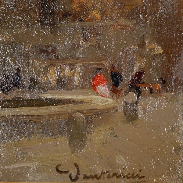 "La fontana dei quattro fiumi", olio su cartone, firmato in basso a destra, entro cornice, 26,6x36,2 cm.