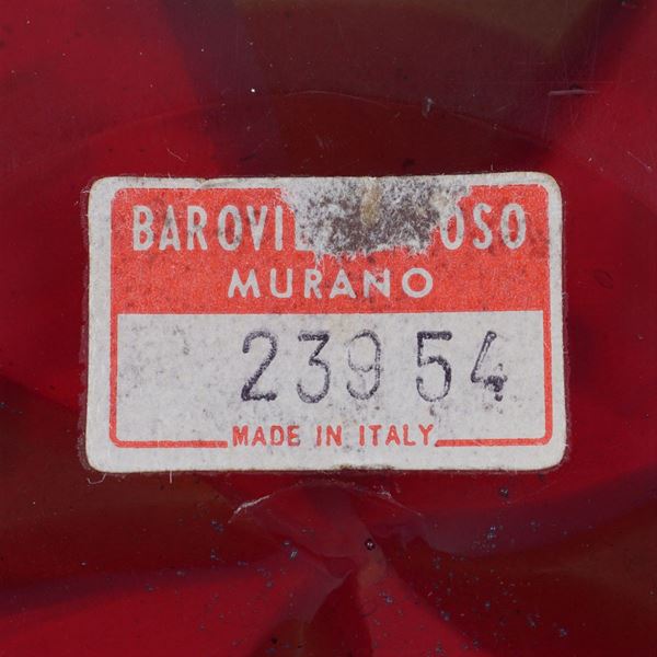 vaso in vetro "a tessere" policrome, manifattura Barovier & Toso, 1957 - 58, etichetta originale sul fondo, h. 20 cm. - d. 15 cm.