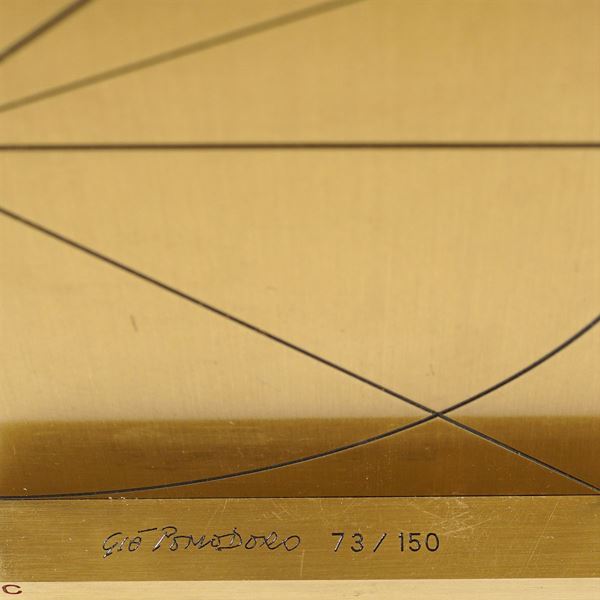 "Aureo", 1987, scultura in ottone, es. 73/150, completa di scatola e stampa pieghevole del progetto, firmata e numerata sulla base, h. 25 cm.