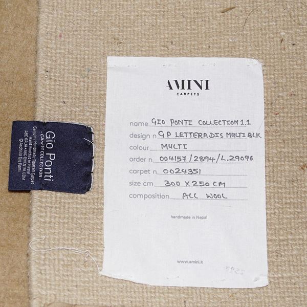 Realizzato da Amini Carpets su disegni originali forniti dall'archivio Gio Ponti. Etichette originale di garanzia