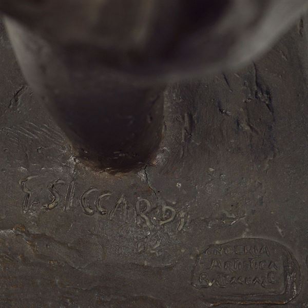 "Giovane pastorella", 1962, scultura in bronzo brunito, firmata e datata sulla base, timbro della Fonderia Artistica Battaglia & C., Milano, h. 40,5 cm.
