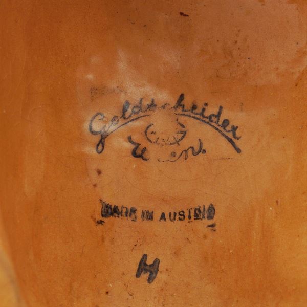 placca in terracotta maiolicata in policromia, raffigurante ragazza con i capelli rossi, marchio della manifattura sul retro, lievi difetti, 30x15x7 cm.