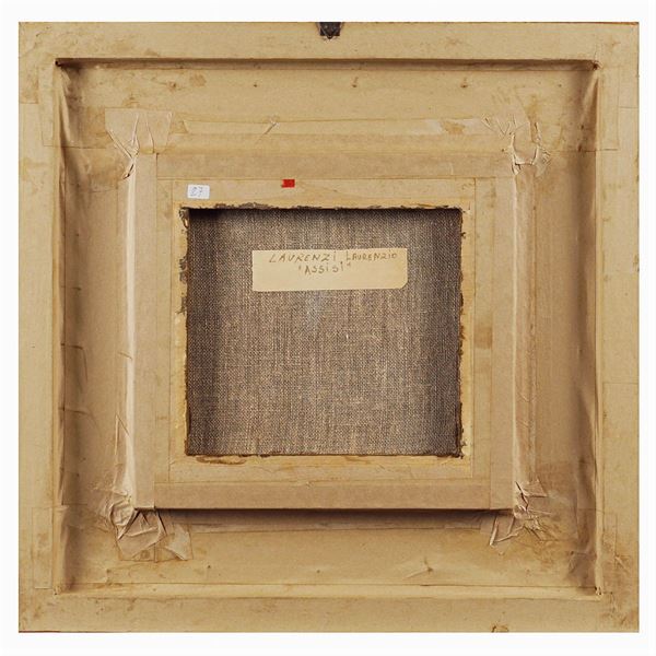 "Assisi", pastello su carta applicata su tela, firmato e intitolato in basso a sinistra, entro cornice, 25x26 cm.