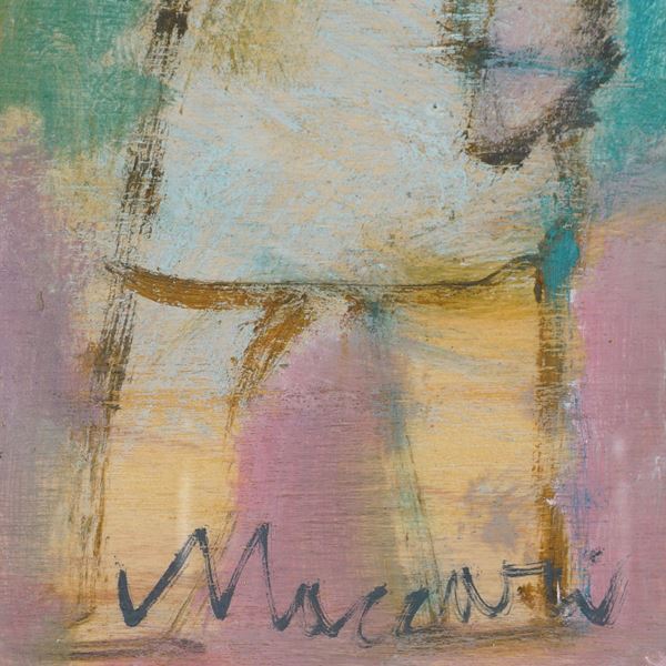 "Cinque figure", 1975-80, olio su tavola, firmato in basso a sinistra, entro cornice, autentica dell'Archivio delle opere del maestro Mino Maccari n. 4502 rilasciata in data 12/05/2017, 26x49 cm.