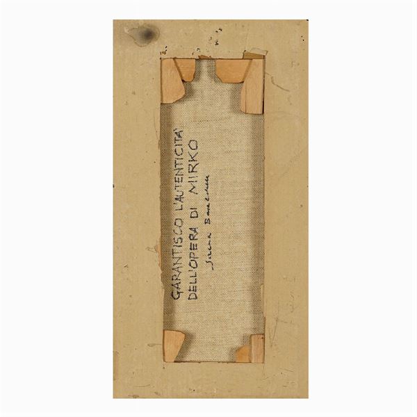 "Senza titolo", tecnica mista su carta applicata su tela, entro cornice, autentica al retro di Serena Basaldella, 42x20 cm.