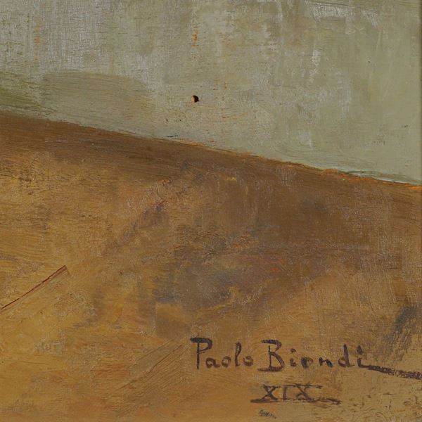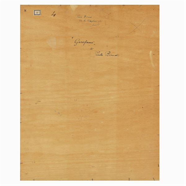 "Natura morta con vaso di fiori", olio su tavola, firmato in basso a destra, intitolato e firmato sul retro, entro cornice, 65x51 cm.