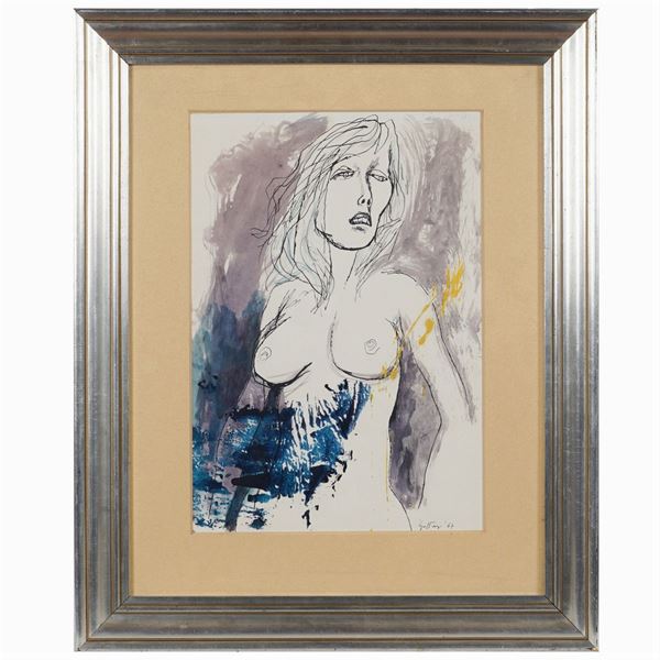 "Volto femminile", 1967, china, acquarello e tempera su cartoncino, firmato in basso a destra, entro cornice. Opera registrata presso gli Archivi Guttuso con il n° 1815412446 in data 19 febbraio 2018, 35.7x26 cm.