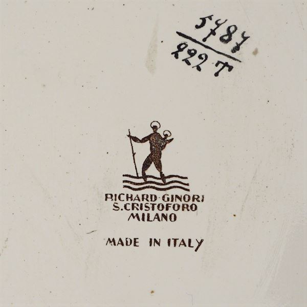 vaso con coperchio in ceramica con decoro in smalto colato nei toni del ruggine, coperchio con presa a foggia di angelo, marchio della manifattura sotto la base, h. 47 cm.