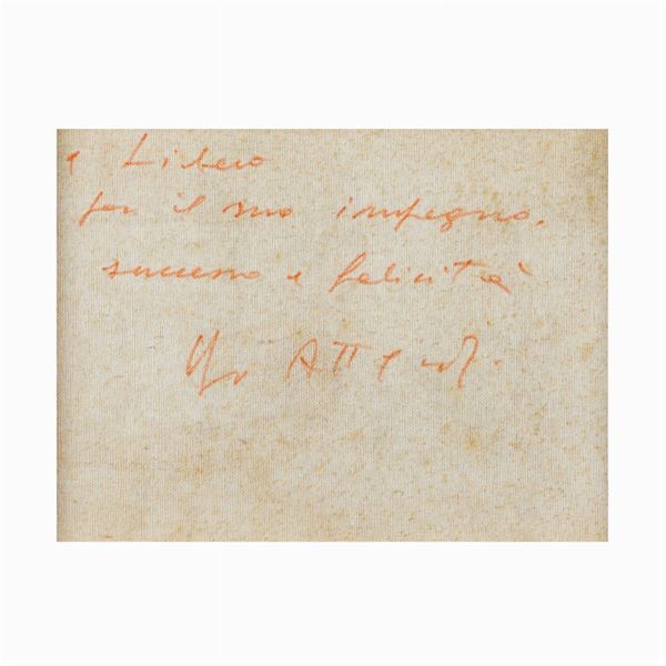 "Figura femminile distesa", gouache su carta applicata su tela, firmata in basso a destra e sul retro con dedica, 24x32 cm.
